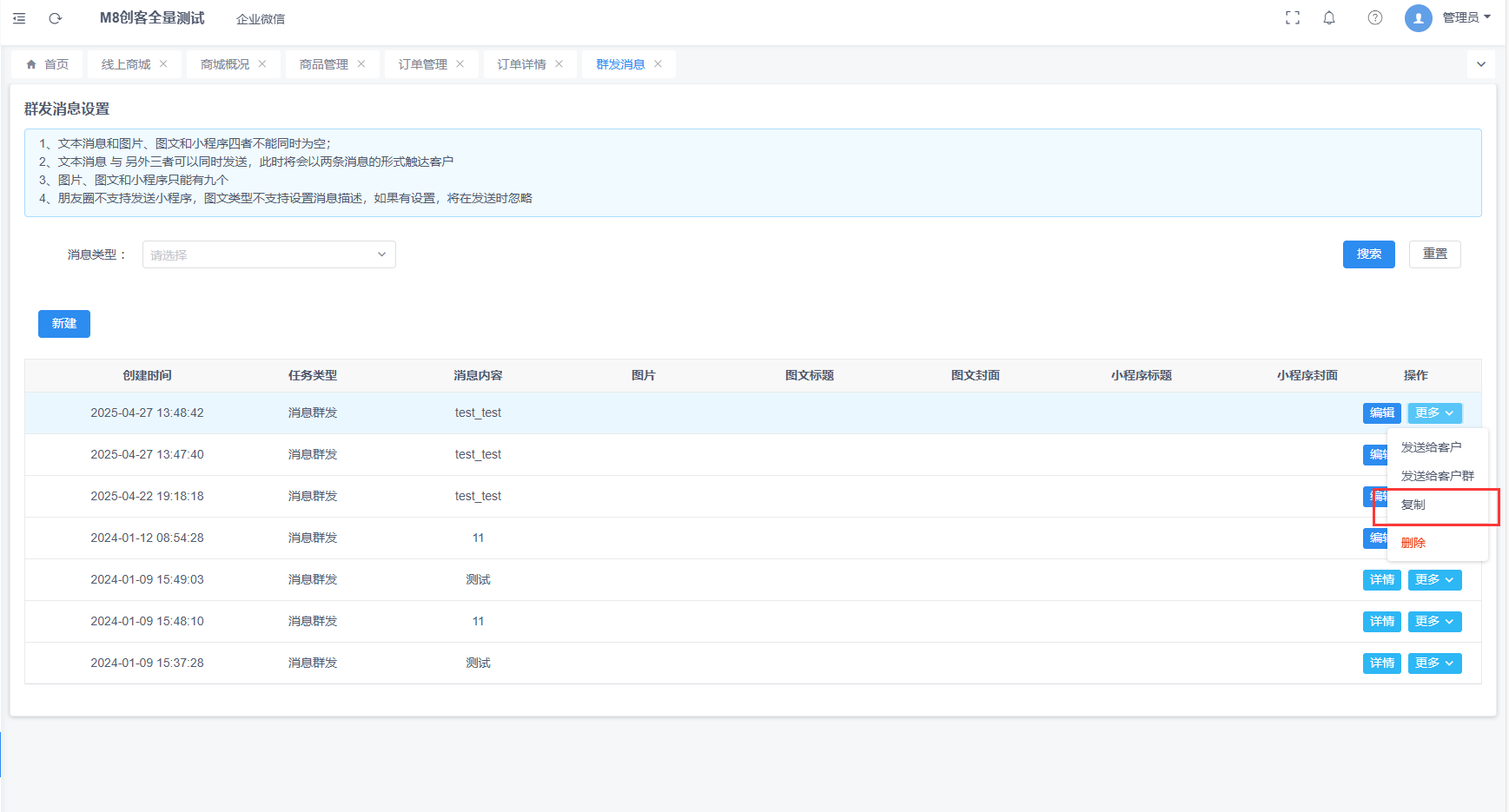 2.创客企业微信-群发消息,可以复制已经创建好的方案