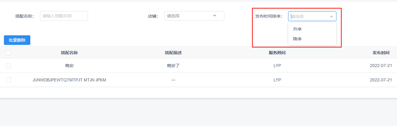 1.3创客款式搭配添加按发布时间正序或者倒序的功能