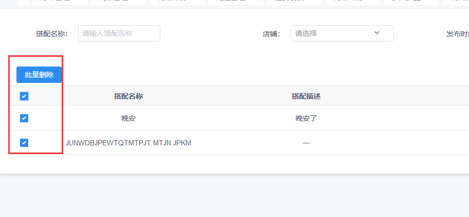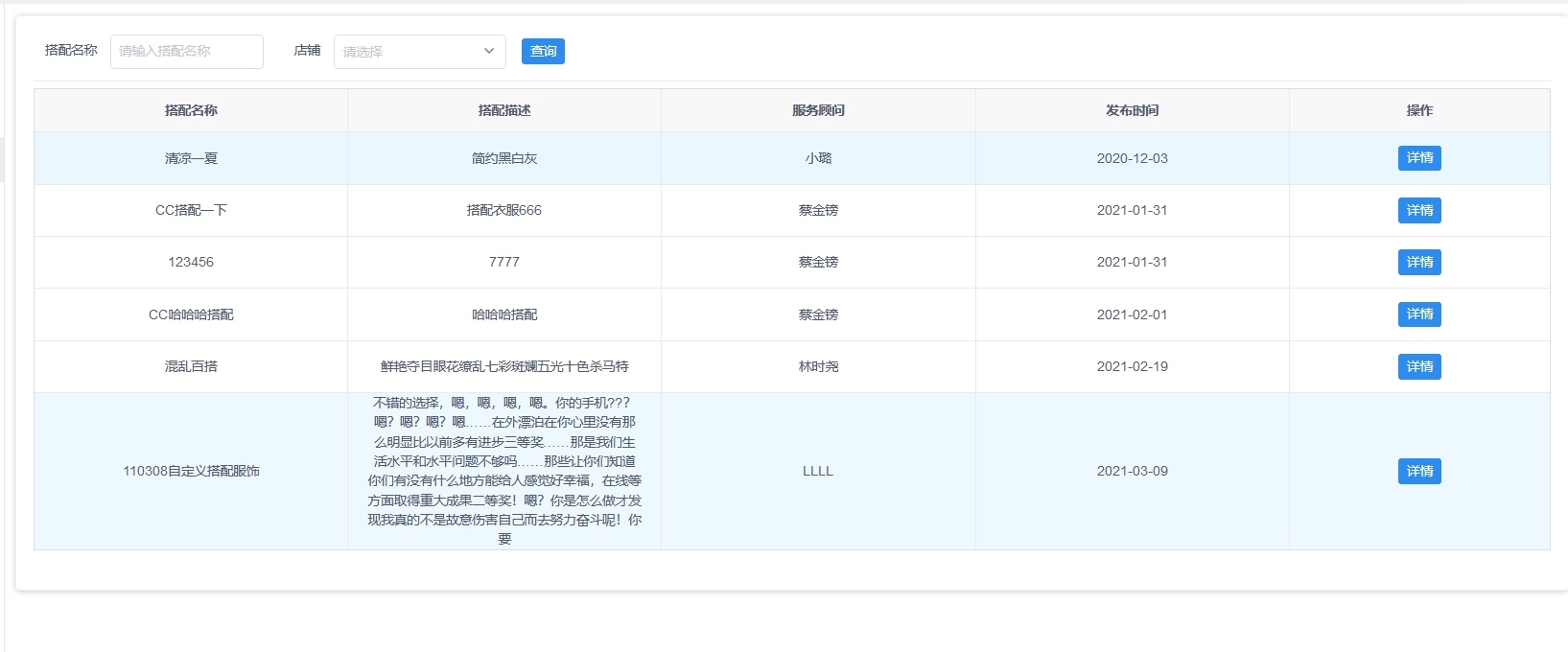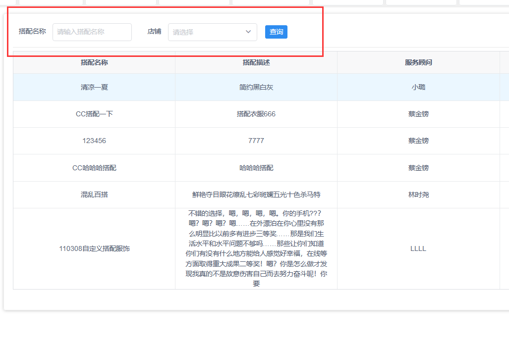 1.1在正上方可根据搭配名称、店铺进行筛选查询