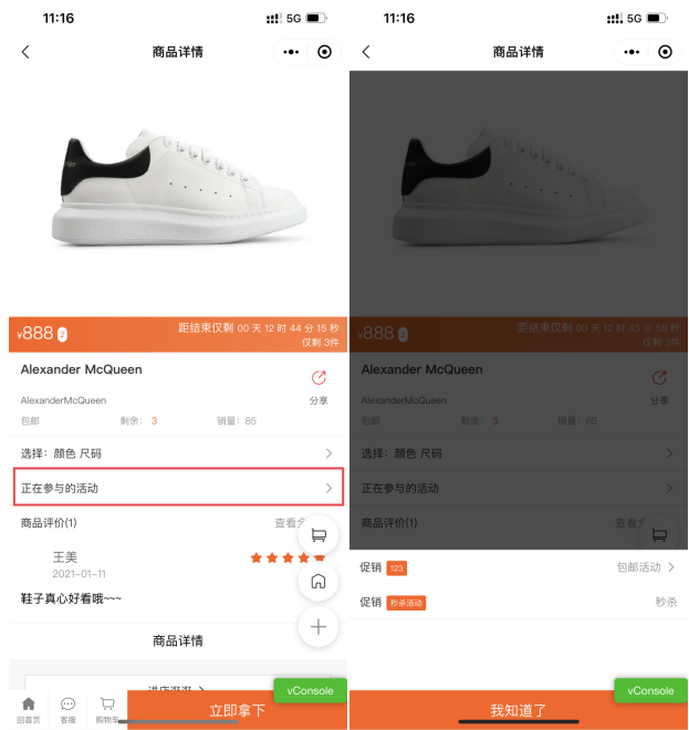 1、商品详情增加显示正在参与的活动,活动包括(积分商城、限时折扣、满减、包邮、拼团、优惠套餐、全款预售、满x件打y折、秒杀、限时特价)