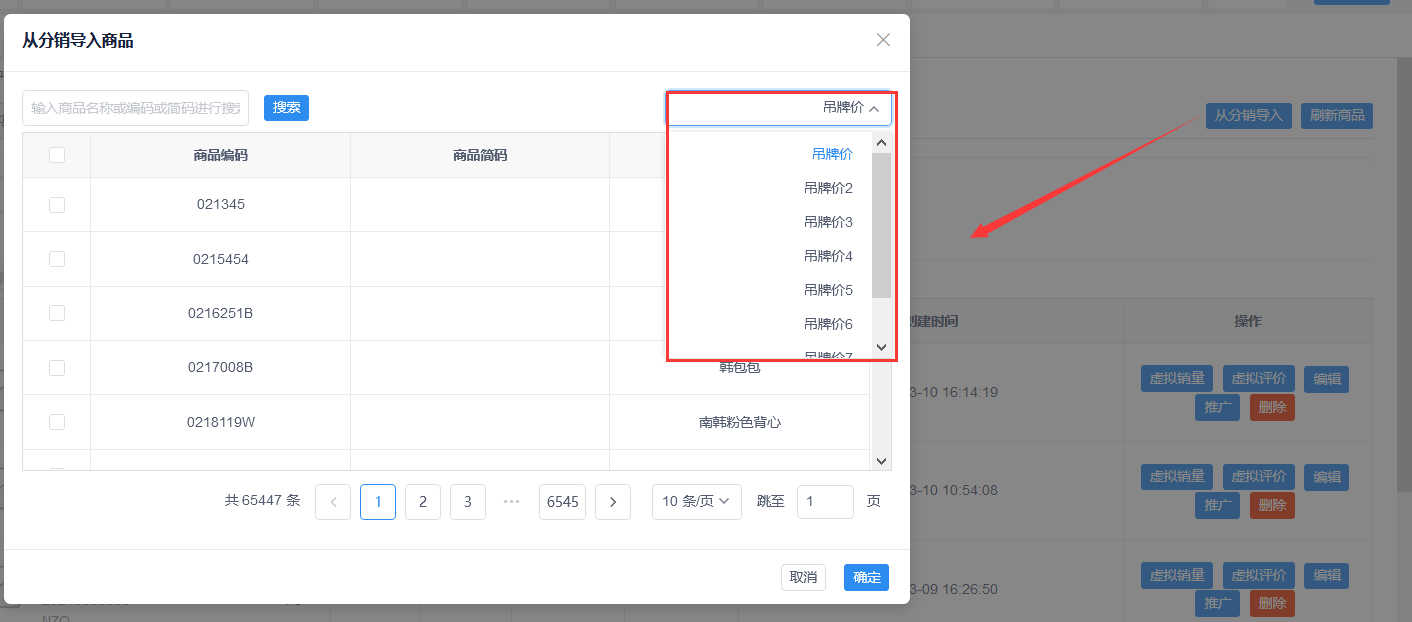 1、创客商品管理从分销导入增加吊牌价取值设置。
