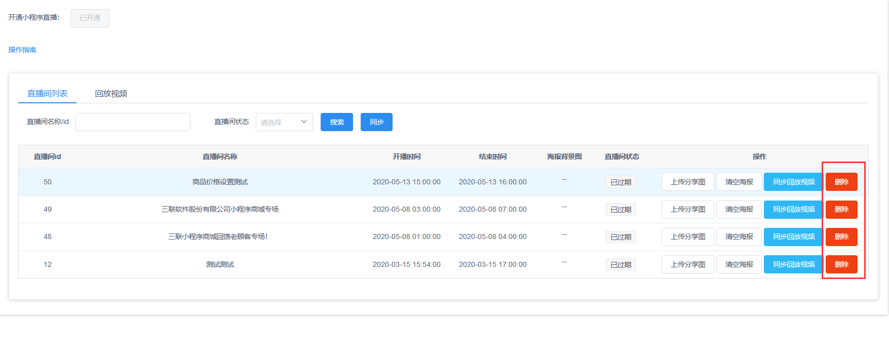 - 小程序直播增加删除按钮