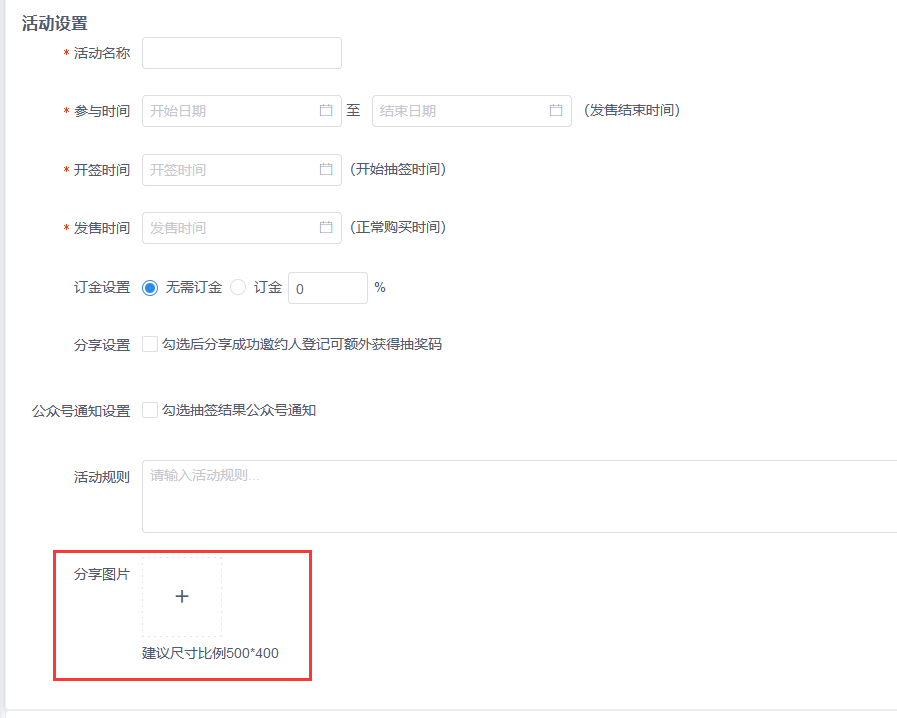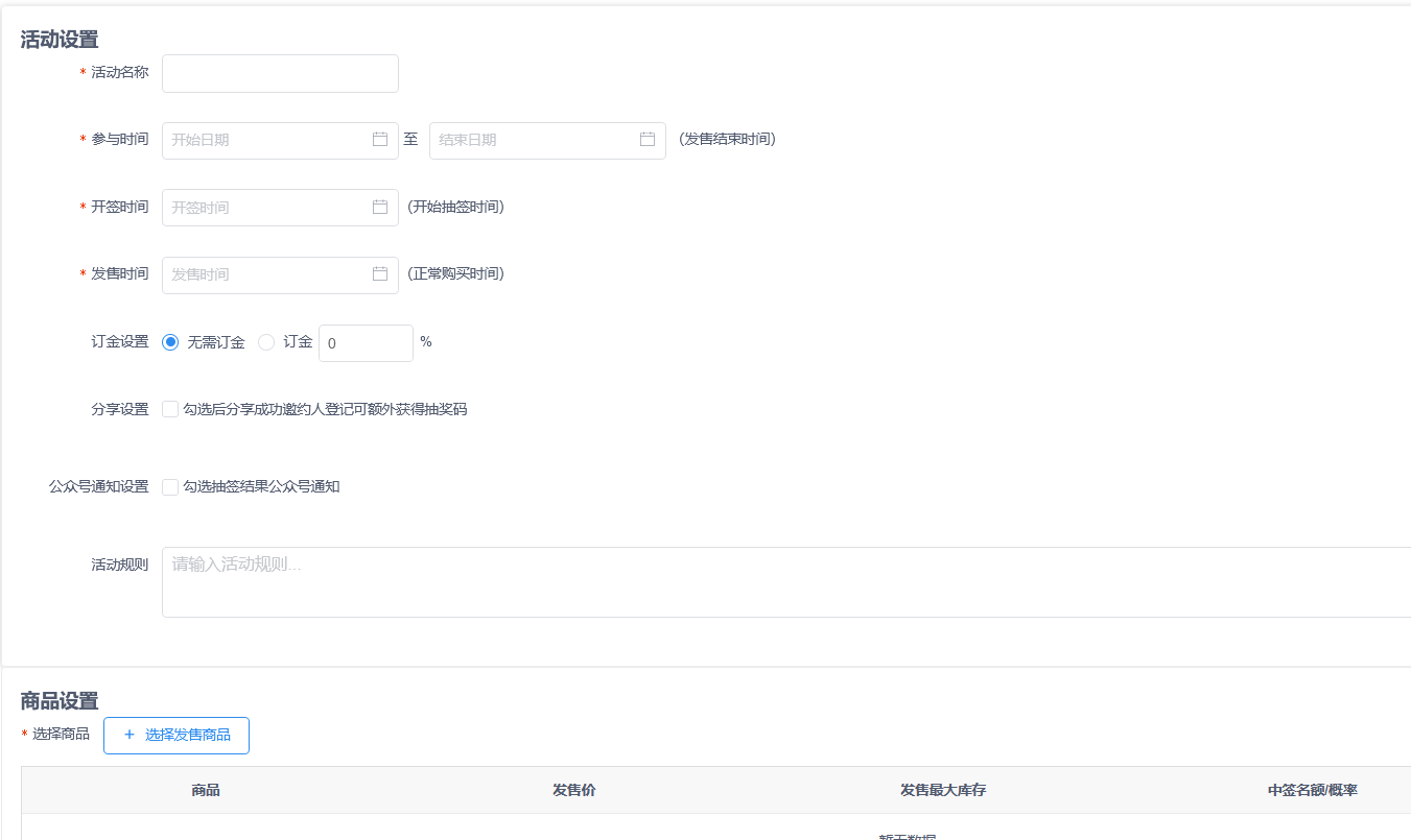 2.1设置参与时间(**发售结束时间必须大于开签时间和发售时间**)