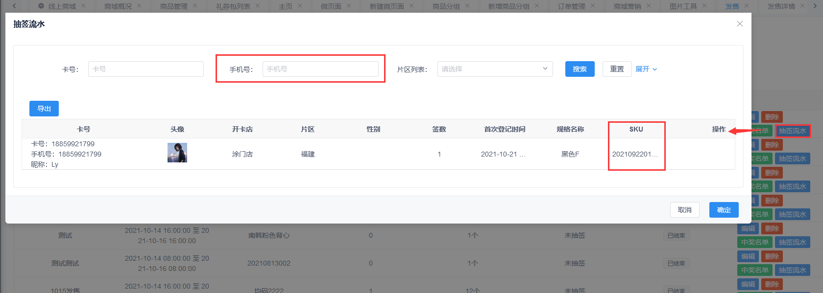二、发售抽签流水增加手机号搜索和显示购买的款号
