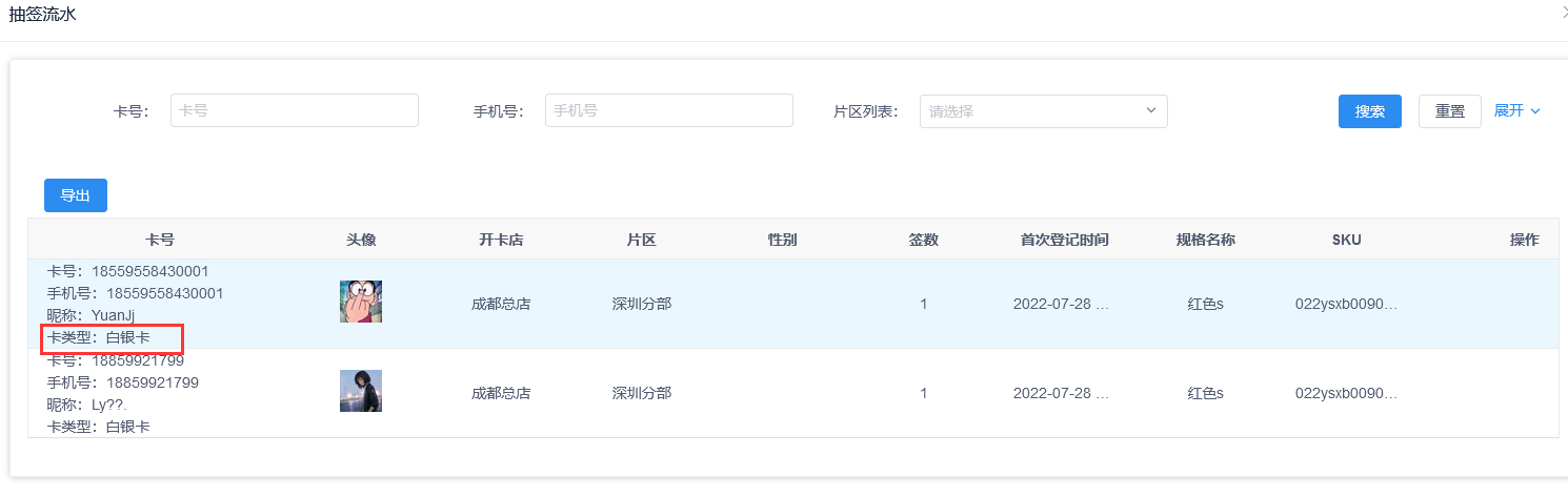 五、创客抽签发售参与列表显示会员卡类型