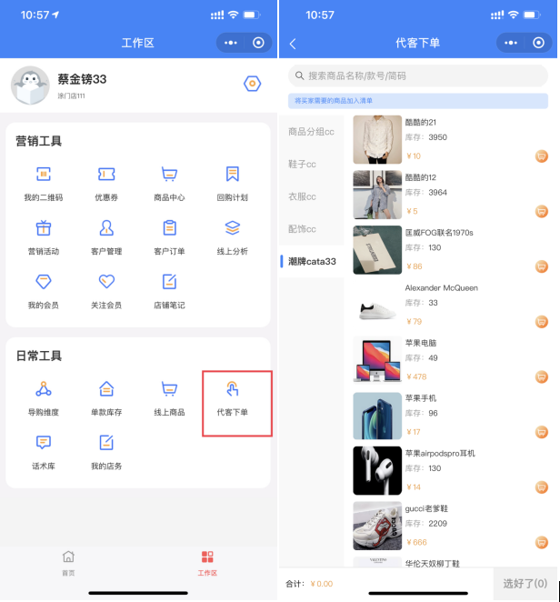2.7以上设置完成后即可在企业微信快乐企鹅小程序上进行代客下单