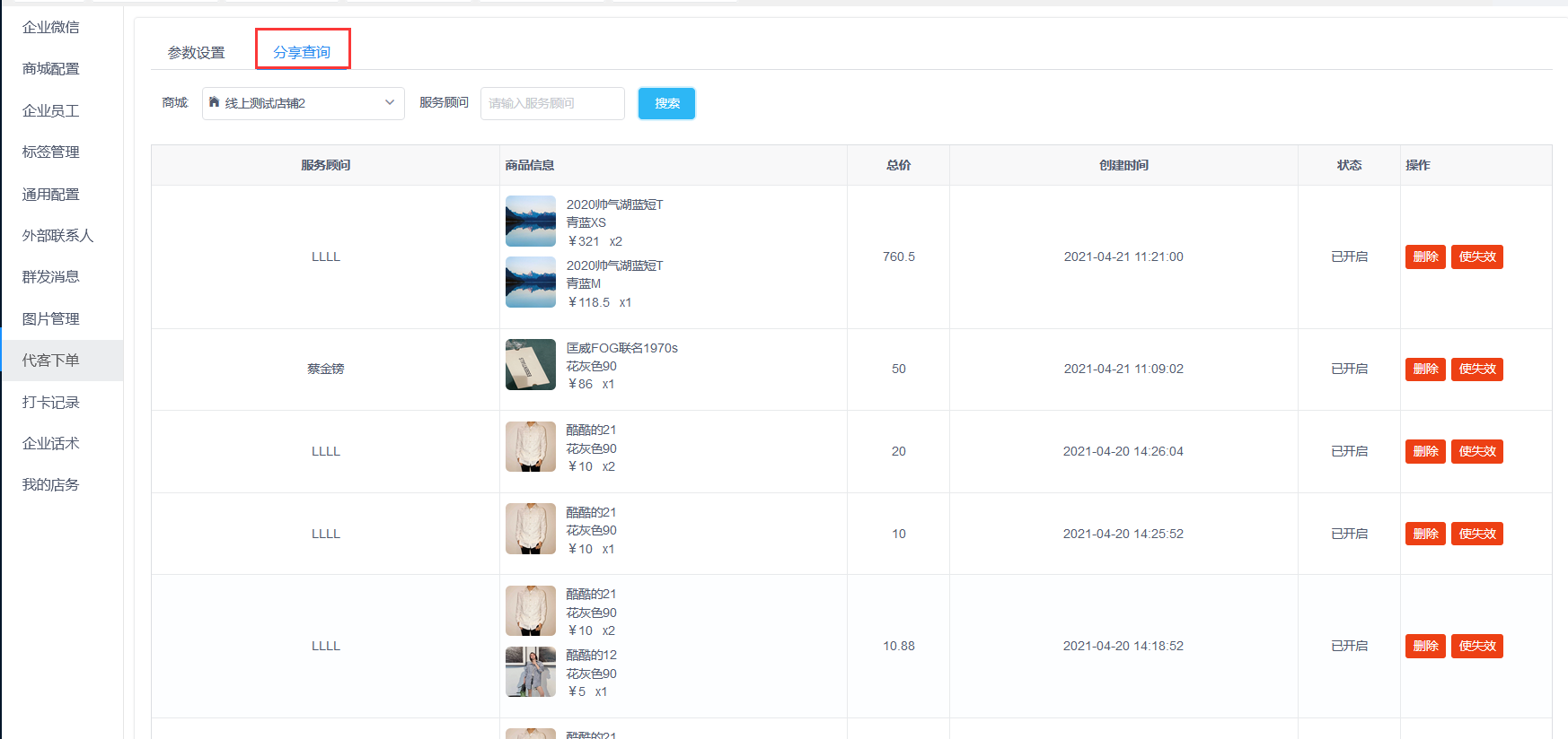 2.12导购分享给会员的代客下单可以在创客分享查询进行查询记录,或操作。