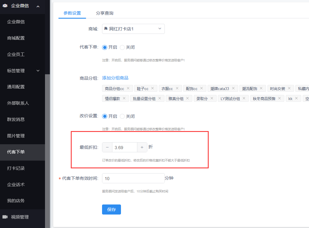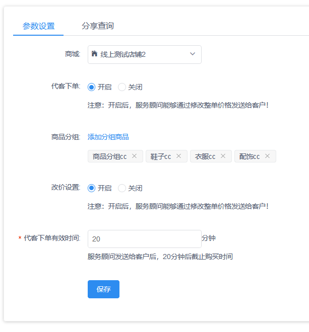2.6代客下单有效时间设置,如设置20分组则是服务顾问发送给客户后,20分钟后截止购买时间。