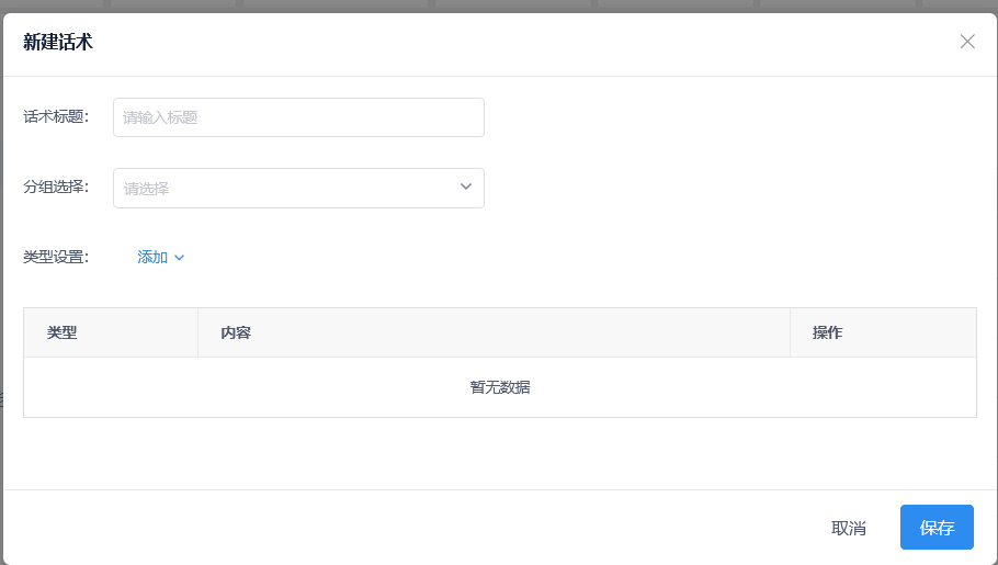 2.3设置话术类型(类型分为文本、图片、图文、小程序四种)