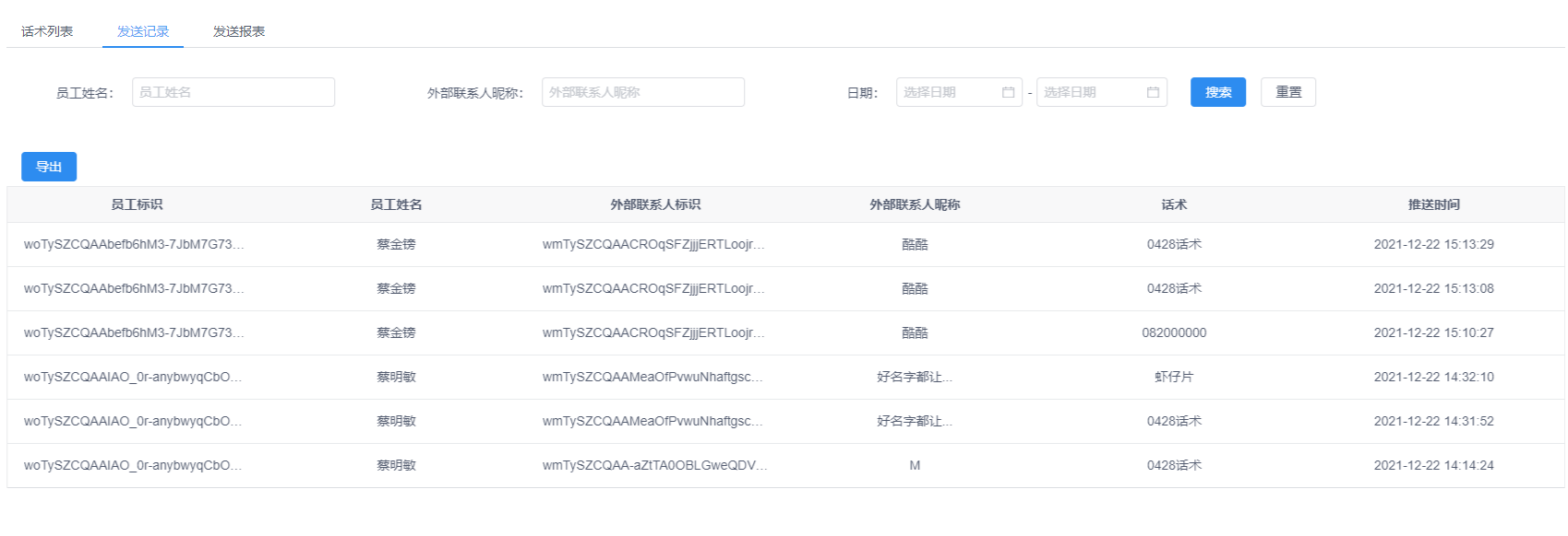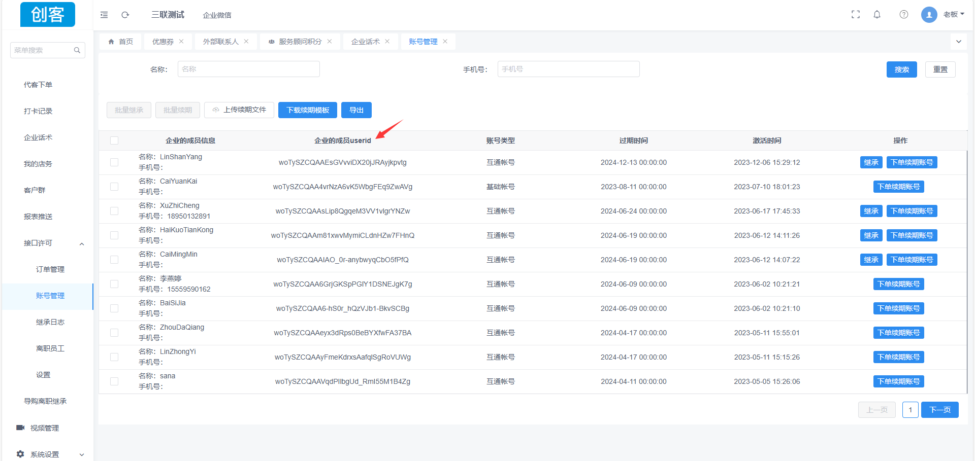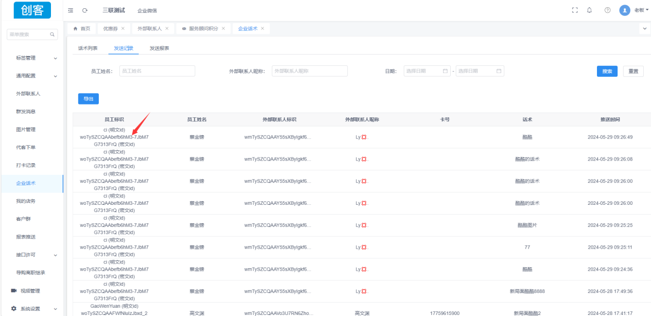 2.企业话术中的员工标识要和账号管理里面的企业的成员userid 要一致