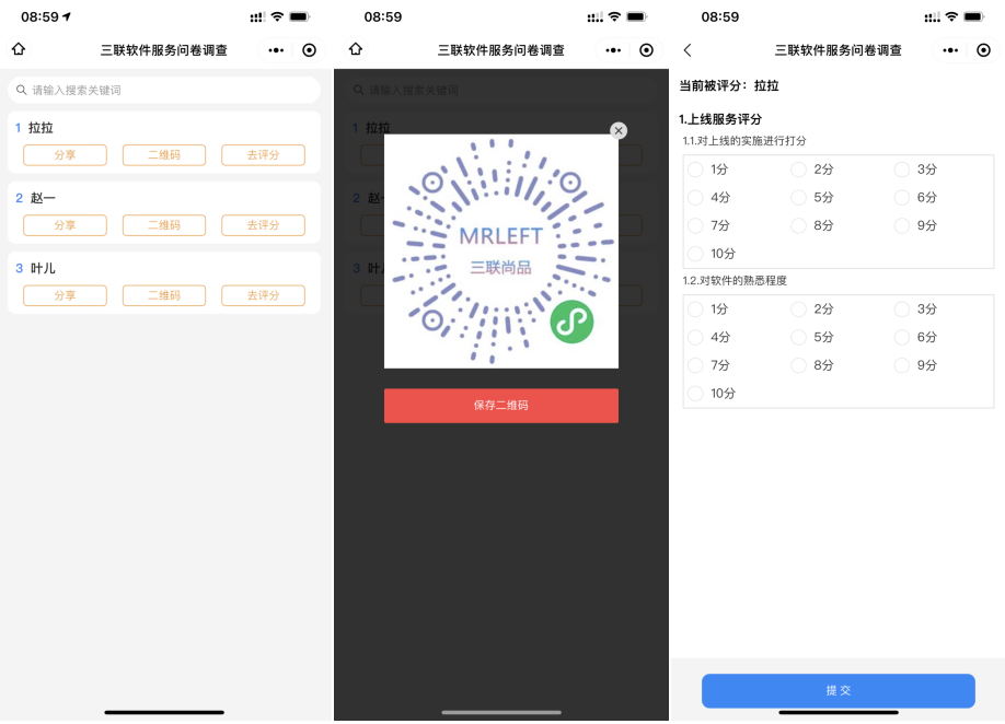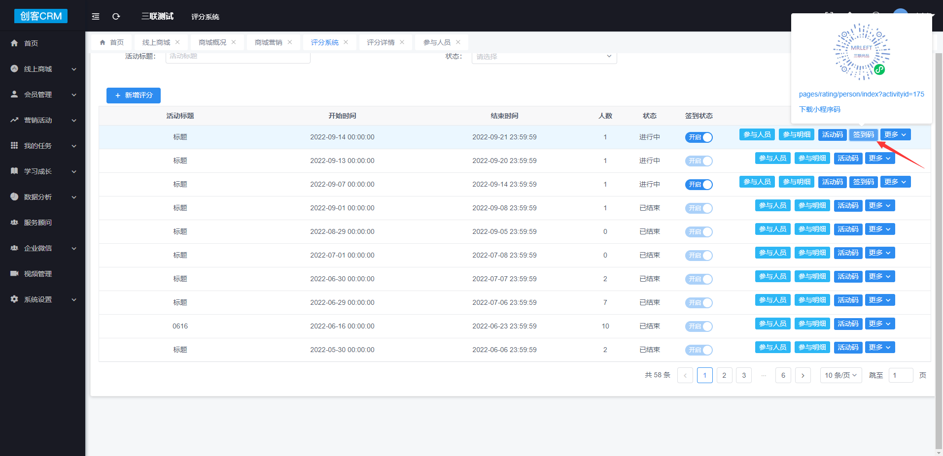 2.5,评分系统参与人员页面点击推广码,扫码进行评分