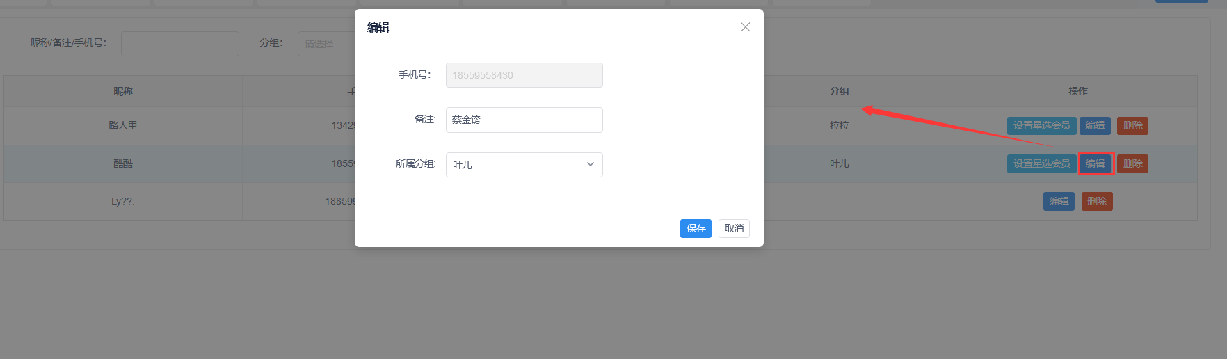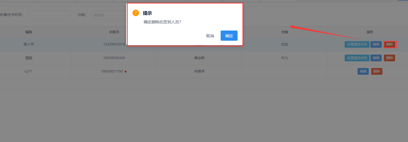 1.4.1点击编辑可以修改签到人员备注或签到绑定错分组进行修改绑定分组