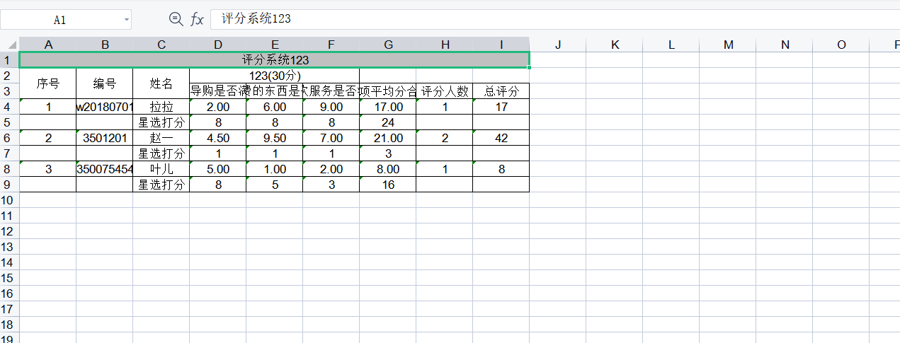 1.6在参与人员页面点击导出报表,该报表增加星选打分显示,评分人数和总评分、各项平均分、各项平均分合计不包含星选人员和评分人绑定的分组。