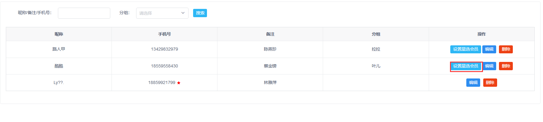 1.4点击更多,可设置管理签到人员,可设置星选人员(**设置为星选人员该人员,该人员为评分标准,评分最接近前三名的人员则会显示在评分最优里面**),只能设置一位星选人员设置后手机号后面会显示星号图标。