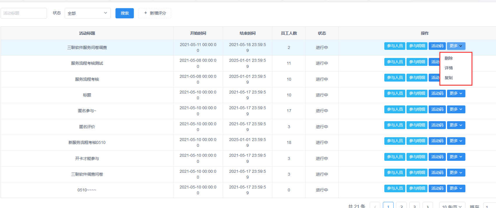 5、在评分系统点击更多可进行查看活动详情、删除活动、复制活动。