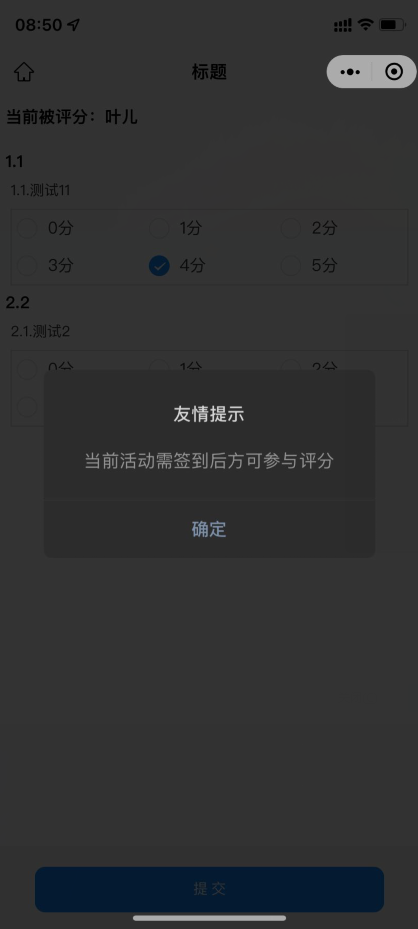 1.1设置签到后才能参与,必须扫描签到后才允许评价,评分人可以选择分组进行绑定(**绑定分组后,对该分组进行评分分数是无效的**)