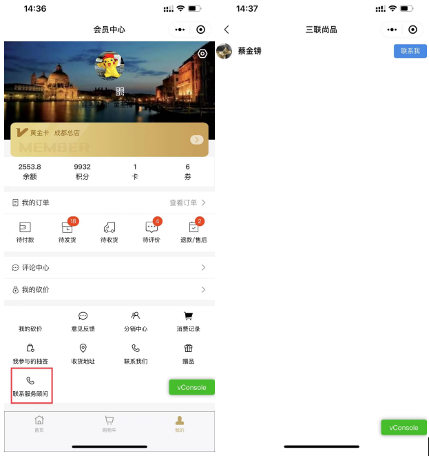 - 会员中心装修增加联系服务顾问