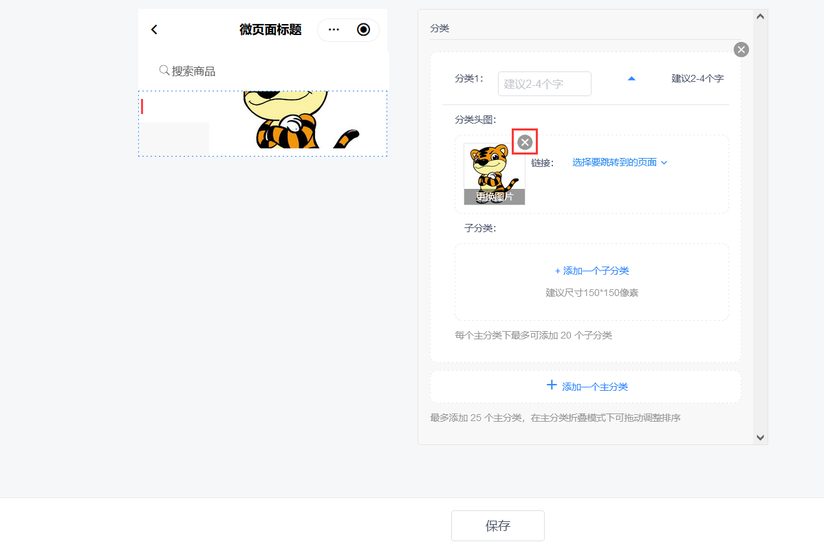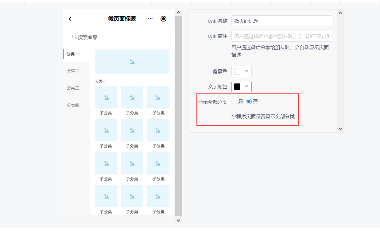 ### **二、微页面分类模板添加是否显示全部分类设置**