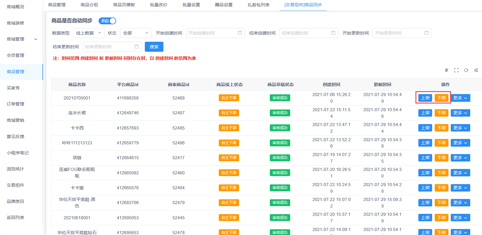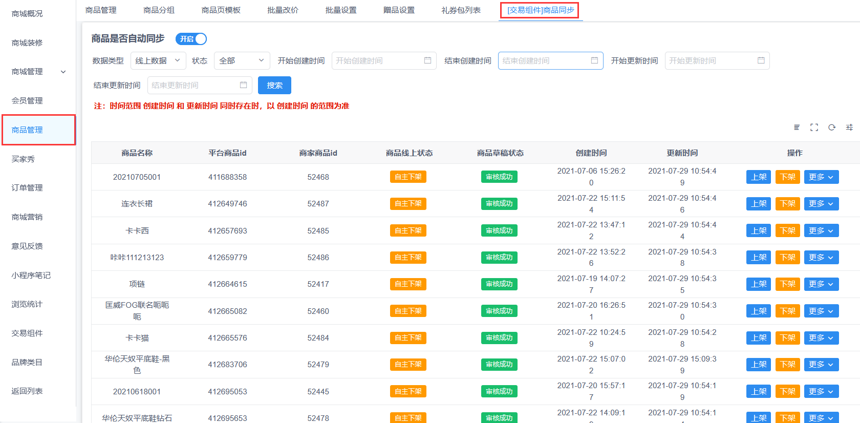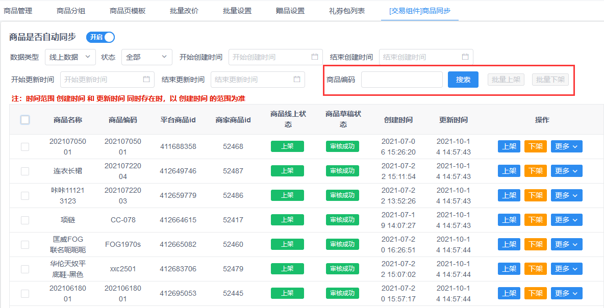 创客商品管理{交易组件}同步商品增加商品批量上下架和商品编码搜索
