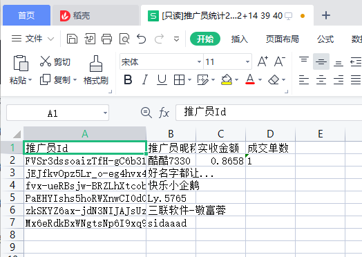 2.1推广员列表展示推广员id、推广员昵称、实收金额、成功单数字段