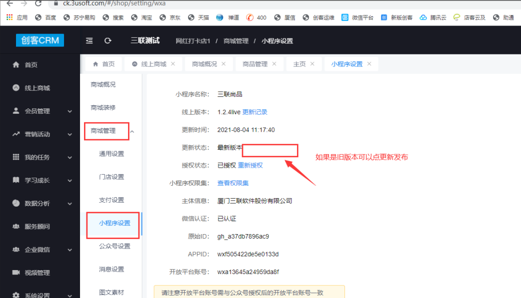 **1.2客户小程序升级到最新版本**