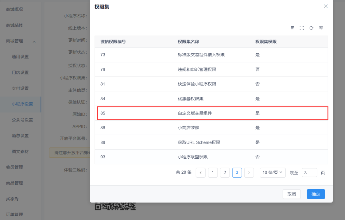 如果授权成功可以在商城管理小程序设置,小程序权限集查看是否成功授权。