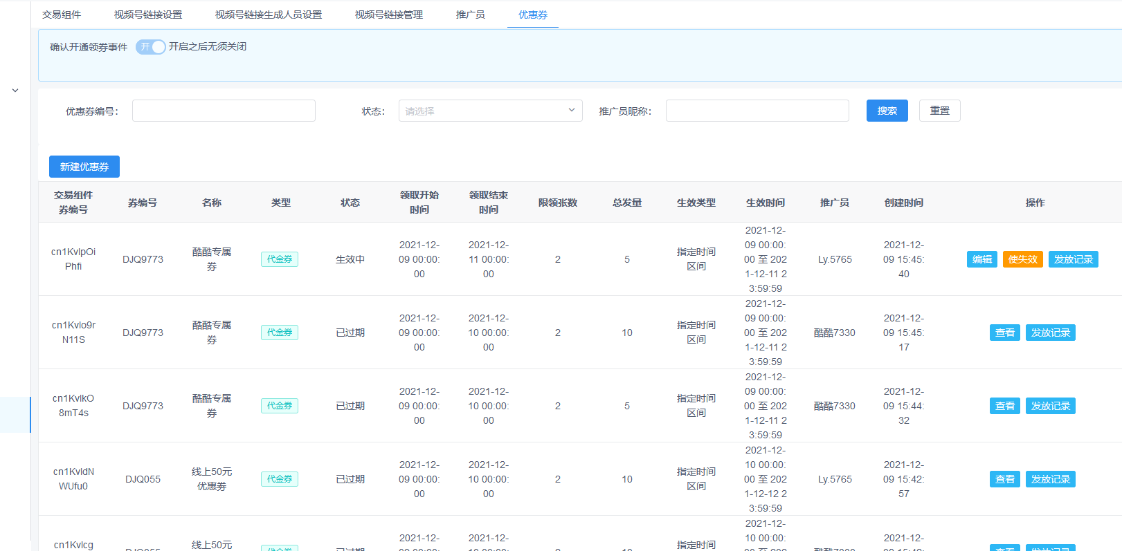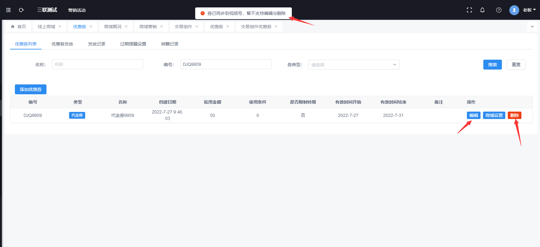 5.创客已经同步到视频号优惠券交易组件里面的礼券优化,强制控制不能编辑和删除