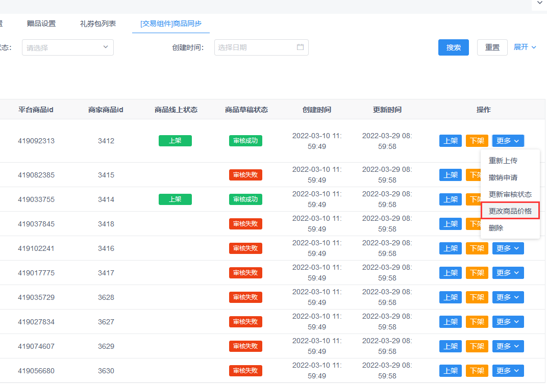 3.创客交易组件商品管理增加修改价格功能(**只有审核成功的商品才能修改**)