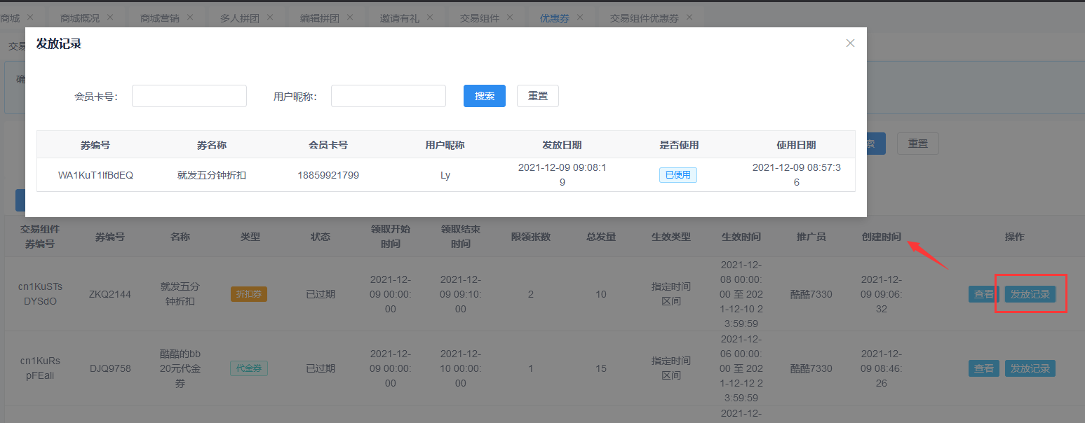 1.2.7列表点击发放记录可以查看会员领取情况和使用情况
