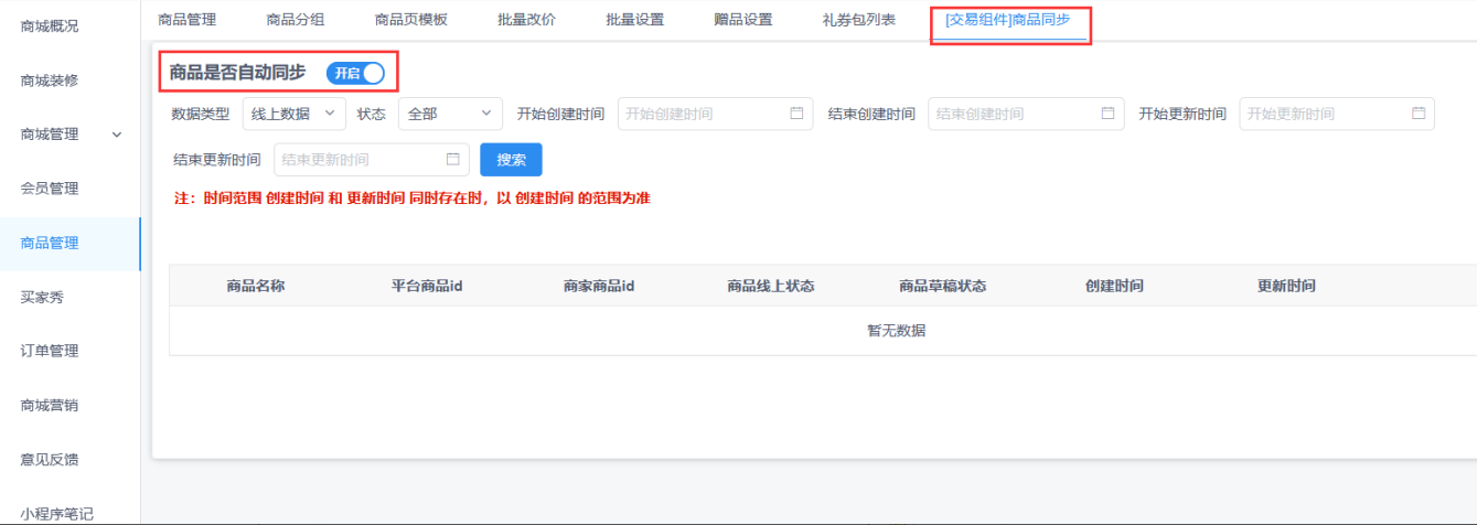 商品管理模块,增加{交易组件}商品同步模块