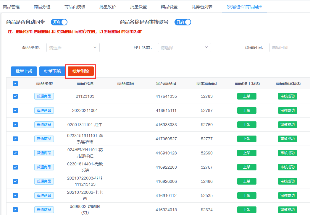 2.创客交易组件商品管理批量删除商品功能