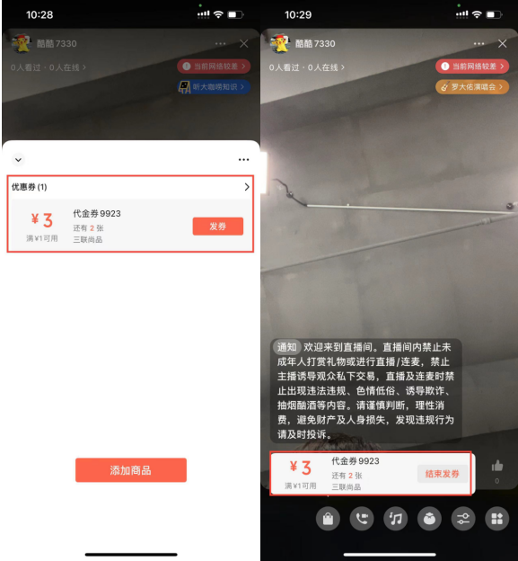1.2.6.1直播间发放优惠券和结束方法界面