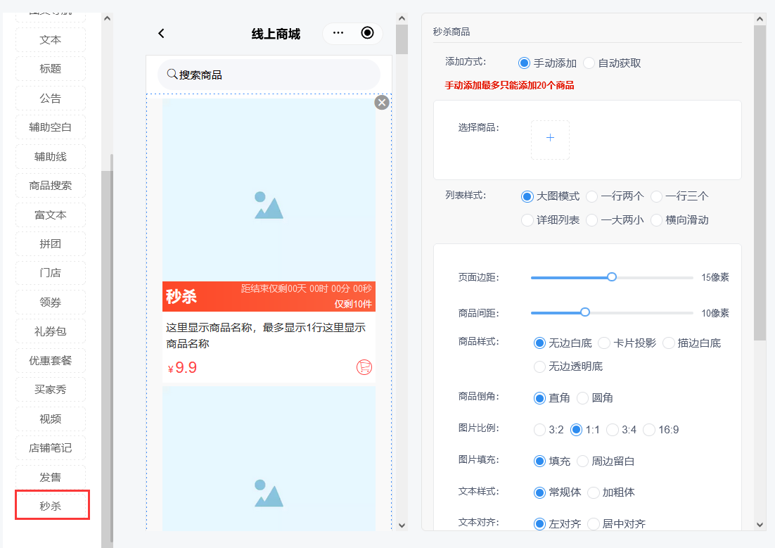 - 微页面装修增加秒杀组件装修