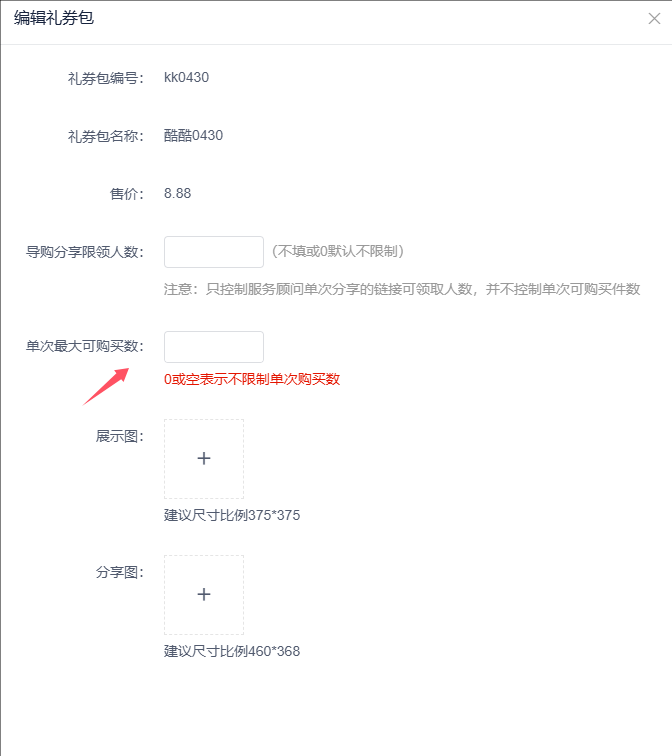 2.小程序-购买礼券包增加参数可以限制单次只能一个礼券包