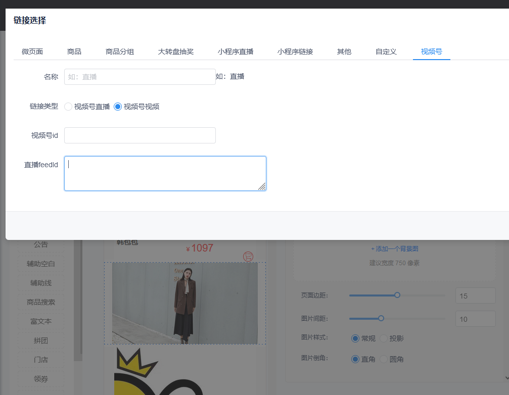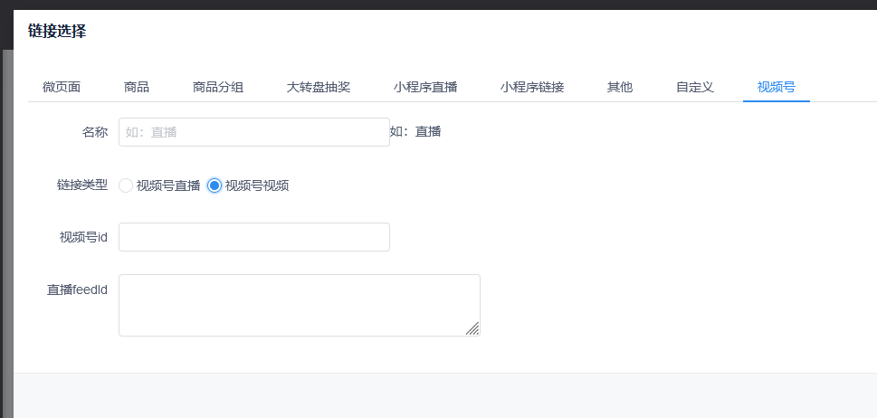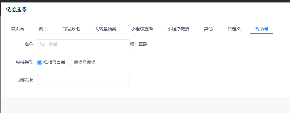 - 创客微页面装修添加链接界面添加视频号装修模块