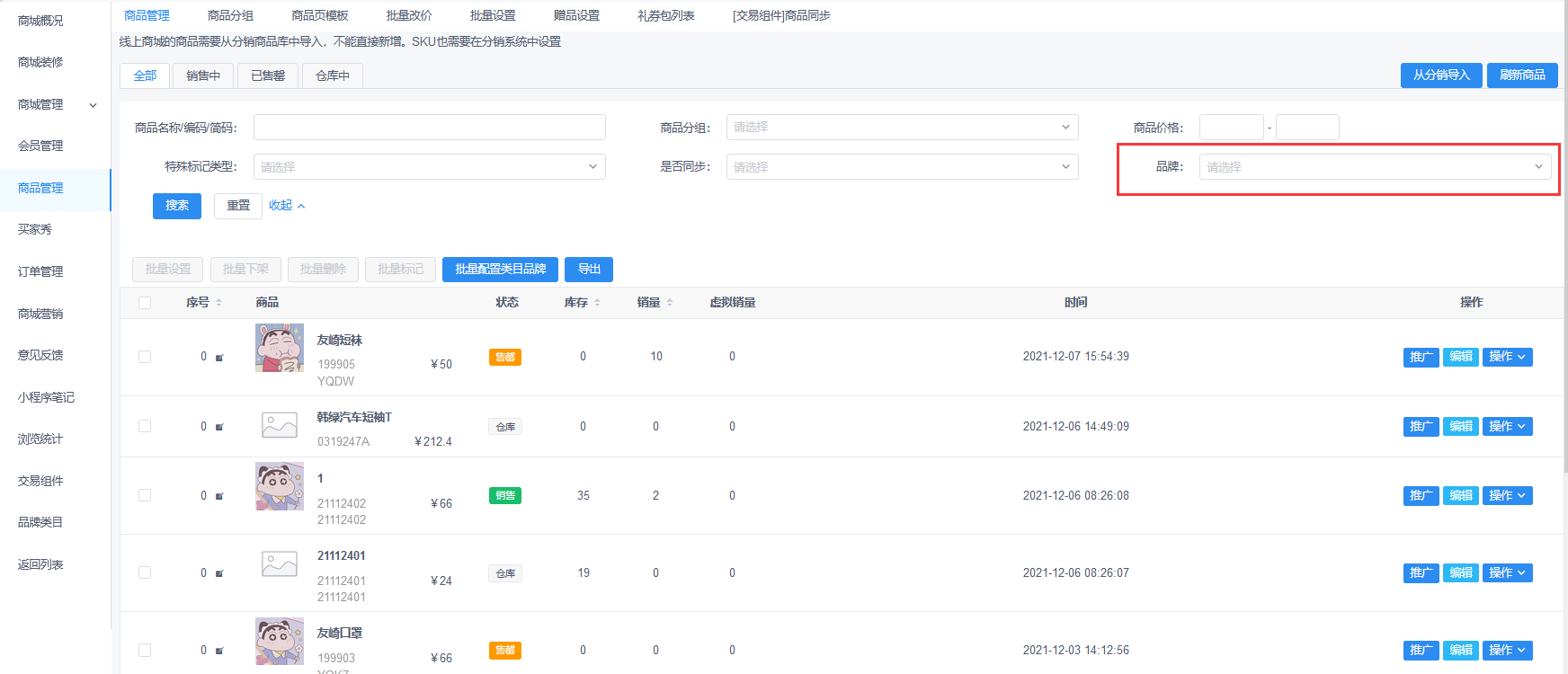 ### **一、商品管理增加按品牌筛选**