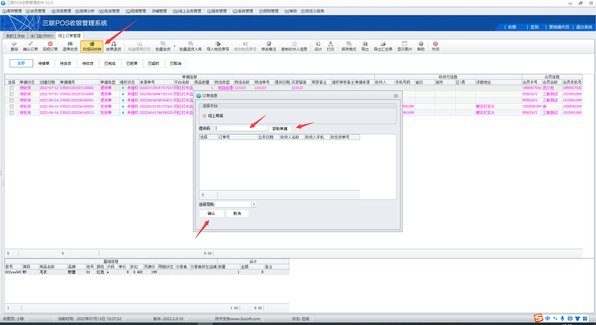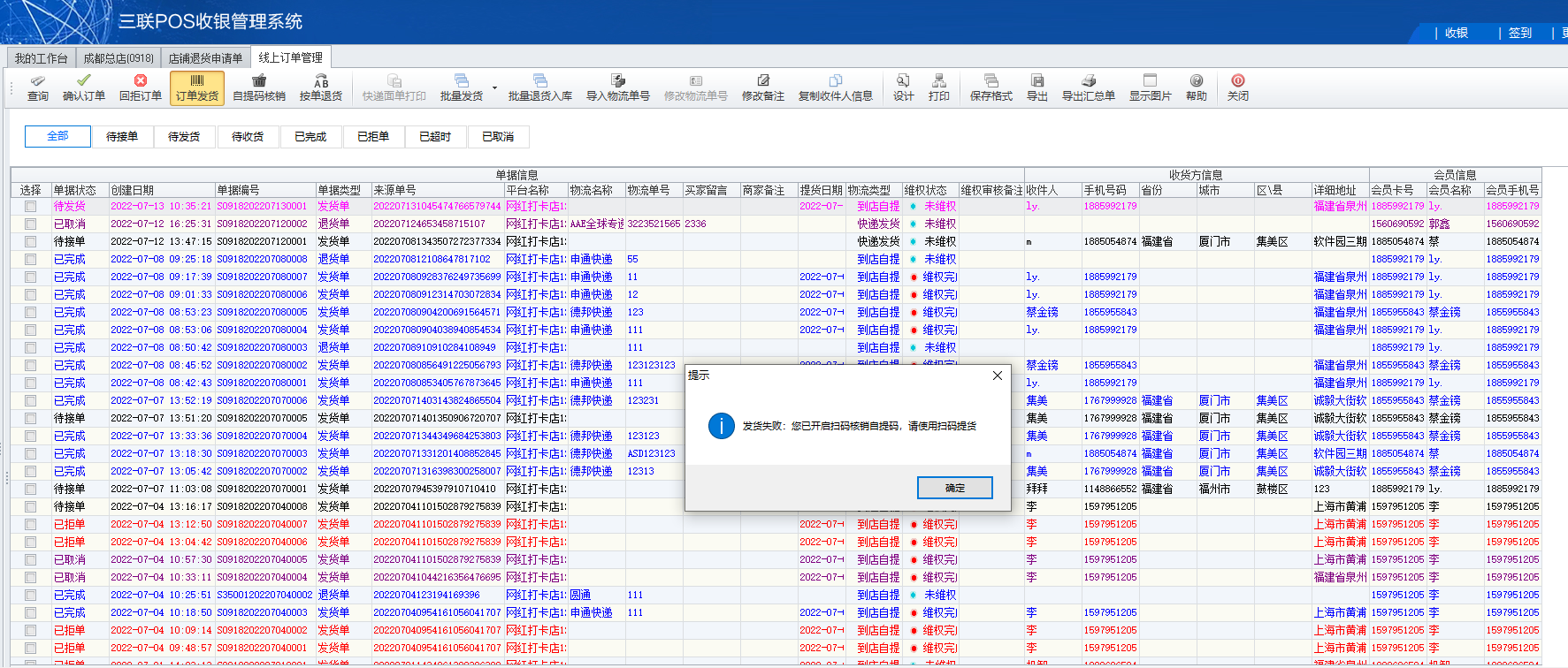 **注意:当创客参数关闭时,核销码默认为会员的手机号码,也可以直接点击【订单发货】去发货**