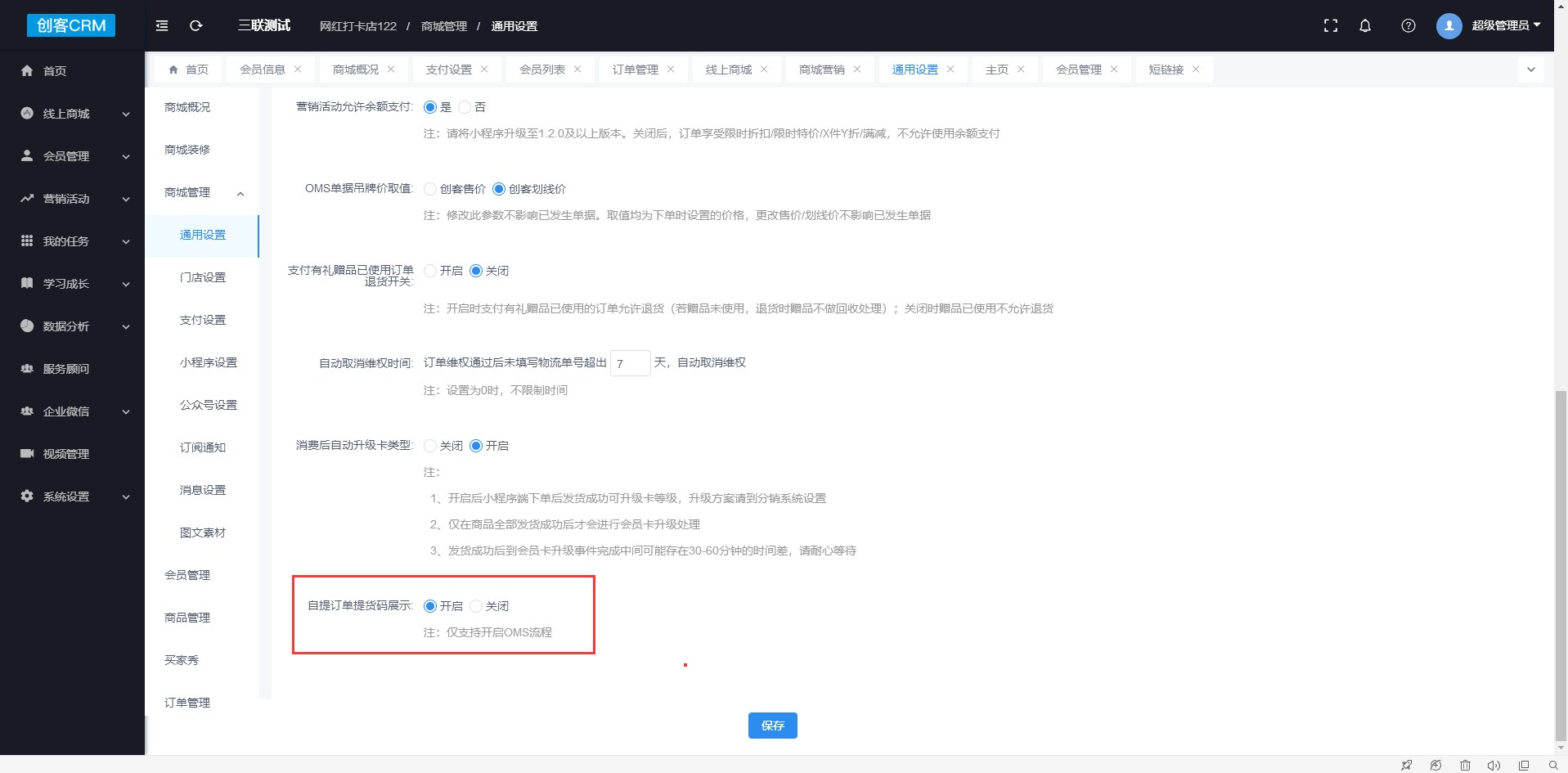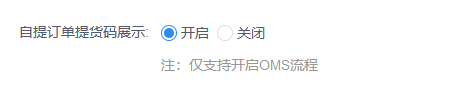 1.在通用设置,订单设置开启自提订单提货码展示(**仅支持开启OMS流程**)