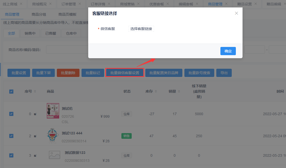 1.创客商品管理增加支持指定微信客服,会员点击商品客服会跳转对应设置的微信客服