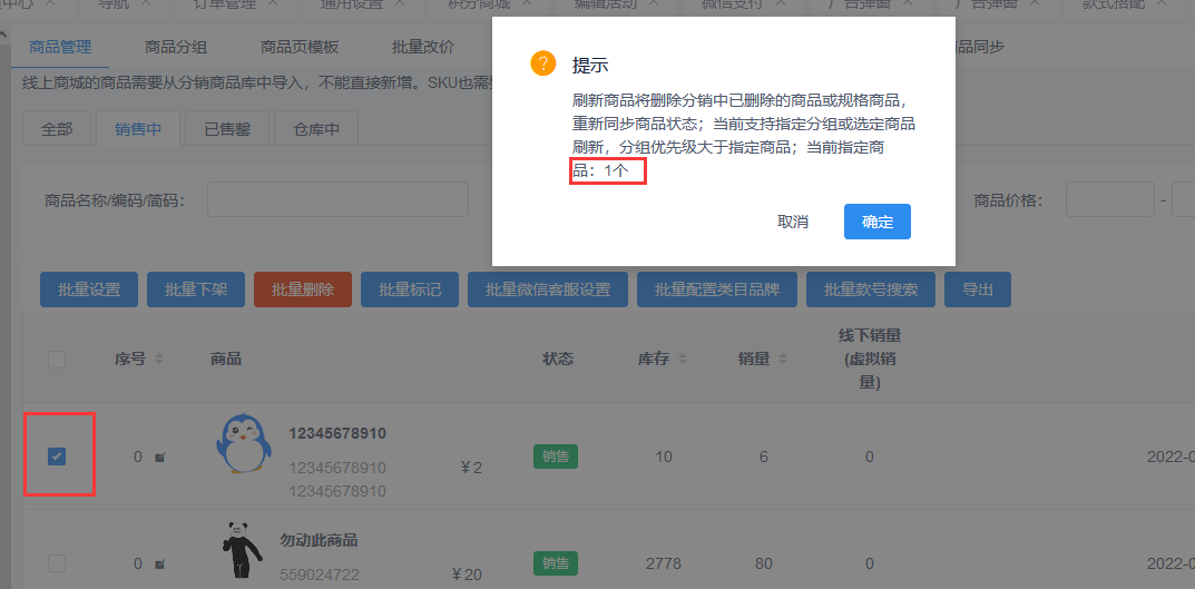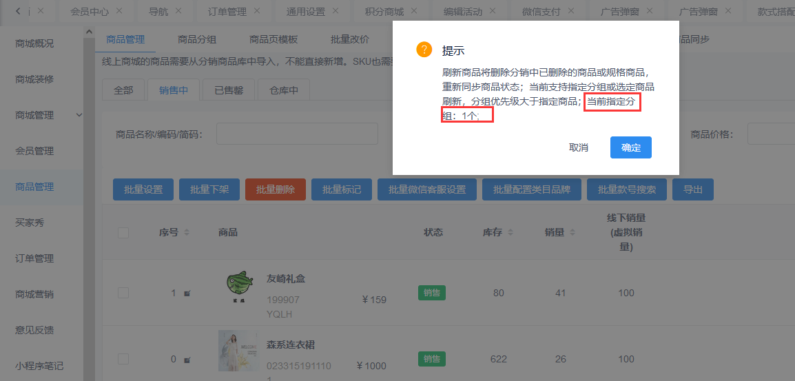 创客商品管理支持单个商品勾选进行刷新和选择商品分组按商品分组进行刷新