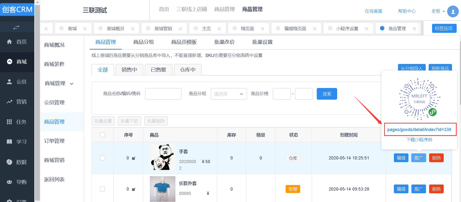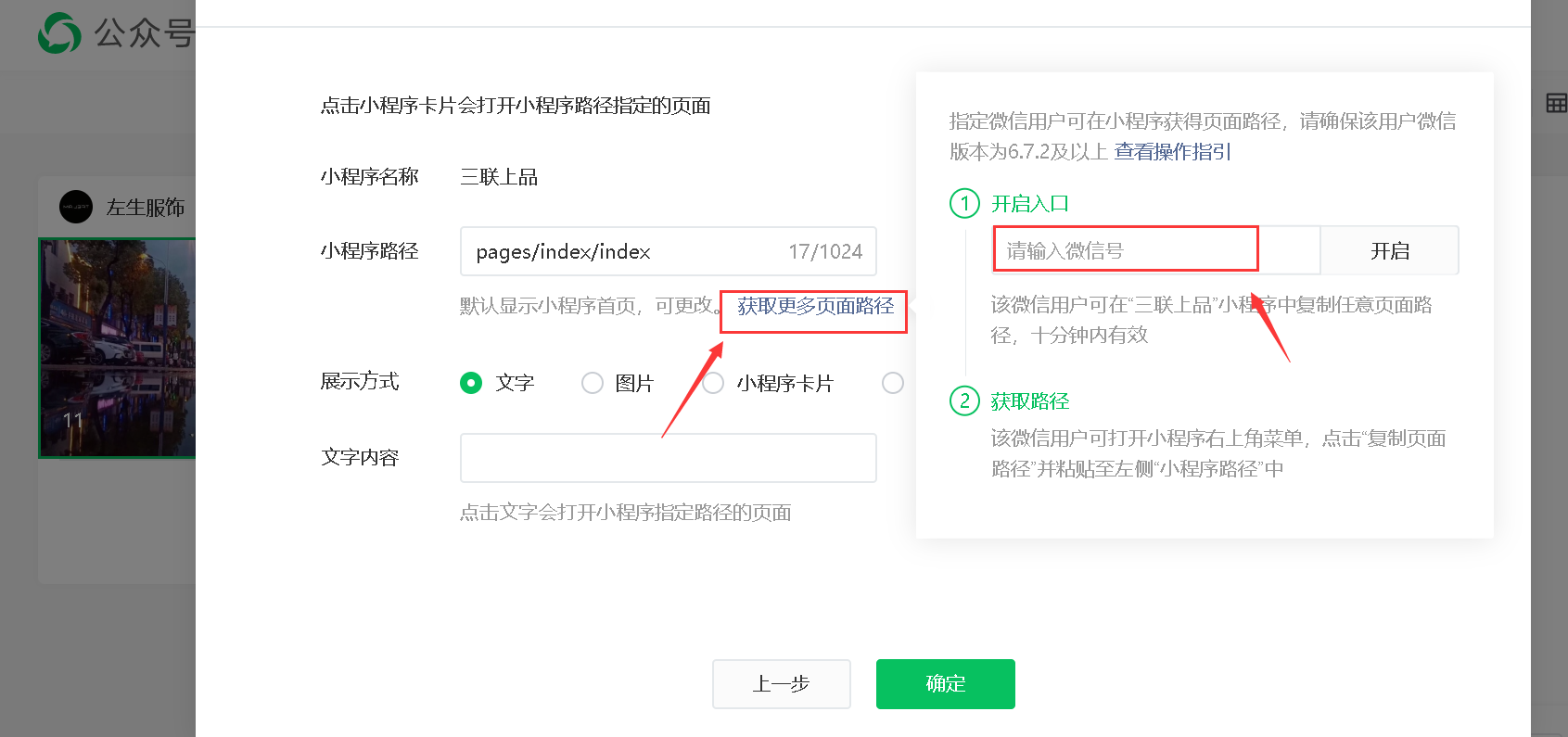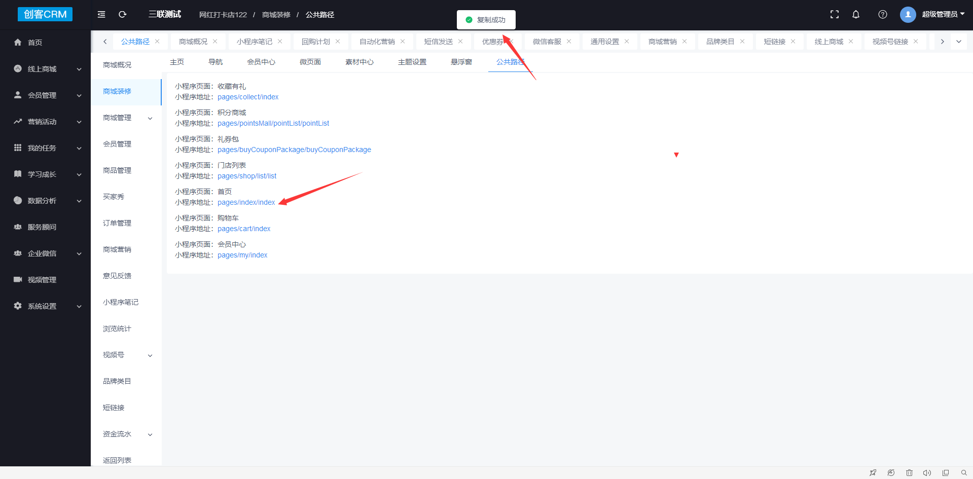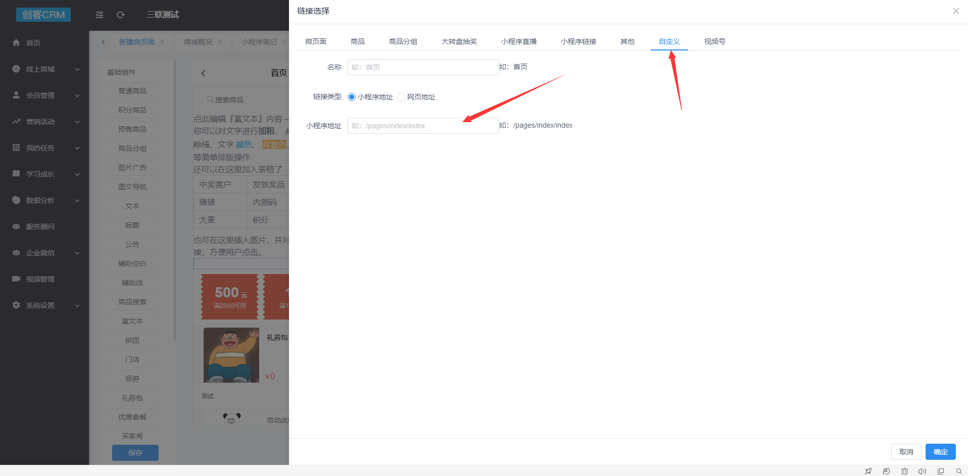 可以在对应的小程序链接路径里面填写进去之后,即可跳转到商场首页