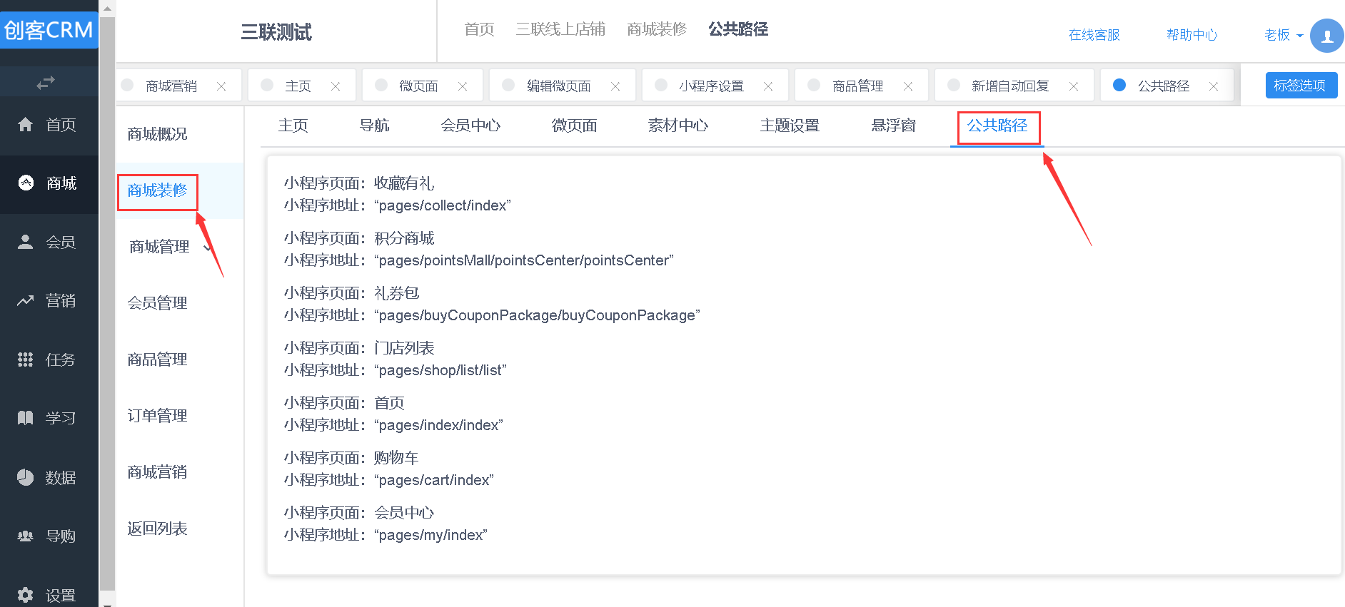 - 商城装修如何跳转到首页、会员中心、购物车、直播间等
