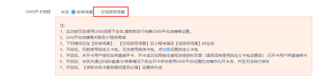 **8,OMS开卡流程**:开启即使用OMS开卡流程跳转类型,关闭则使用默认开卡流程