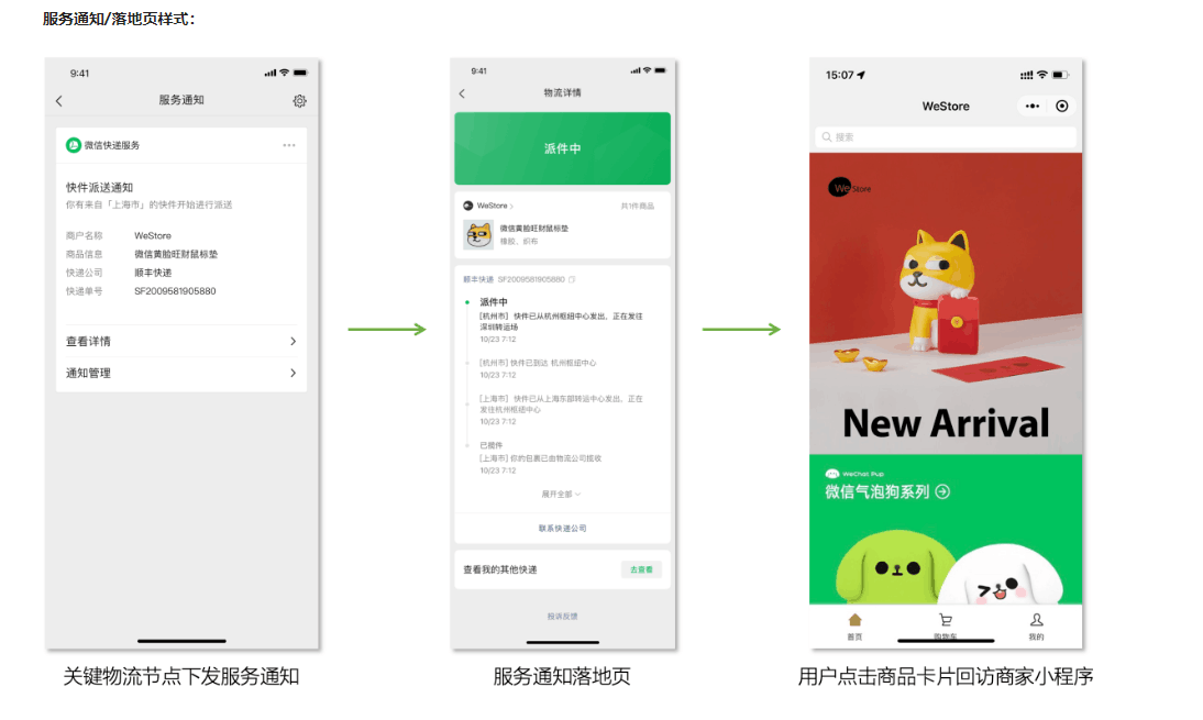**8,物流查询**:开通对接官方物流插件,物流查询组件只能查看物流轨迹、物流消息可以查看物流和物流消息,比如发货、签收通知,直接点击申请即可,无需配置(注意:申请条件需要90天内有支付行为才能申请成功)