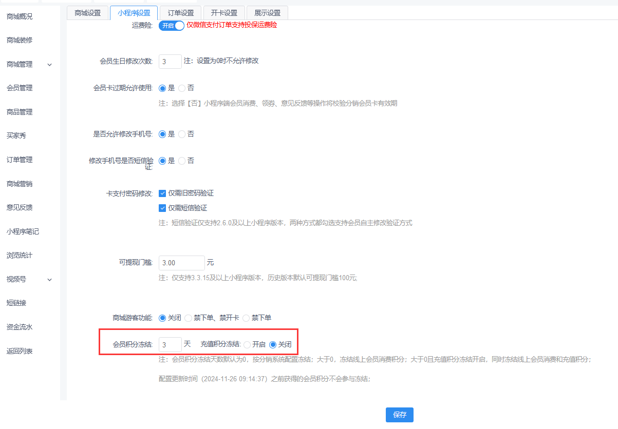 **11,会员积分记录显示期限**:控制会员中心里面的积分记录查看