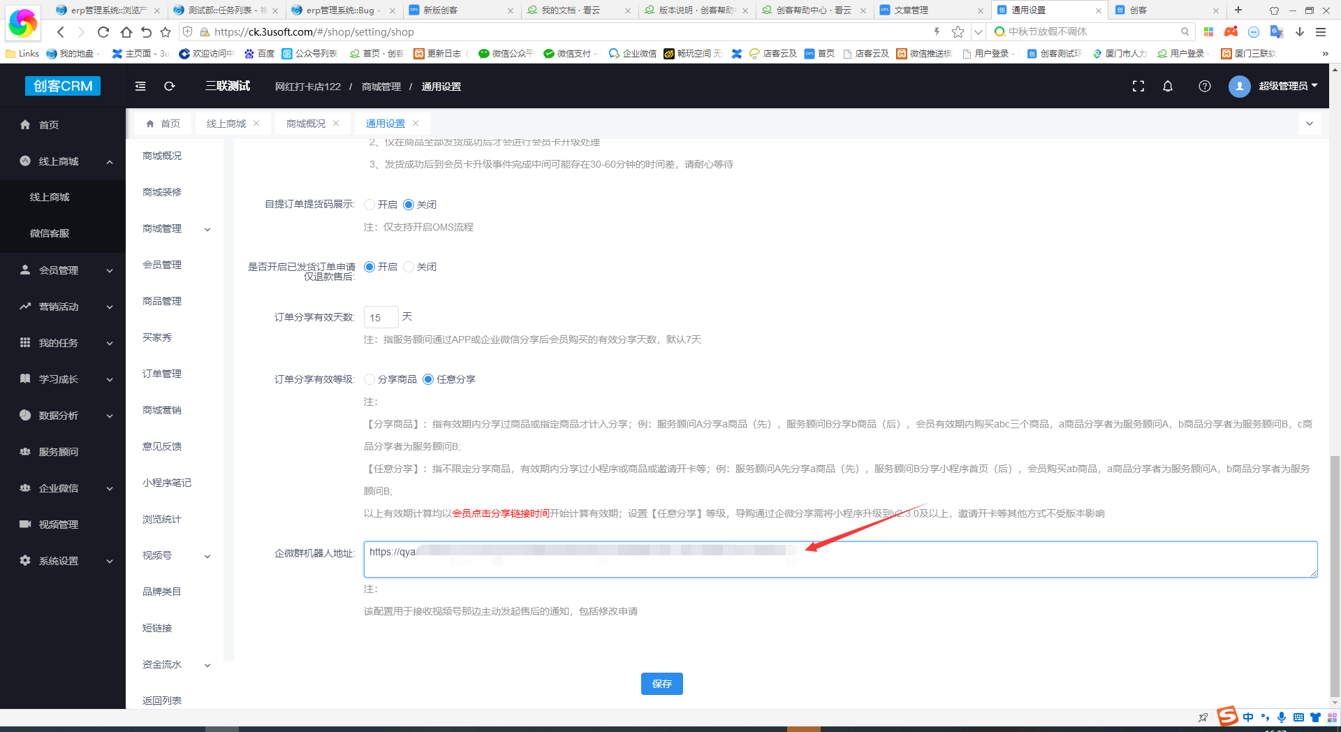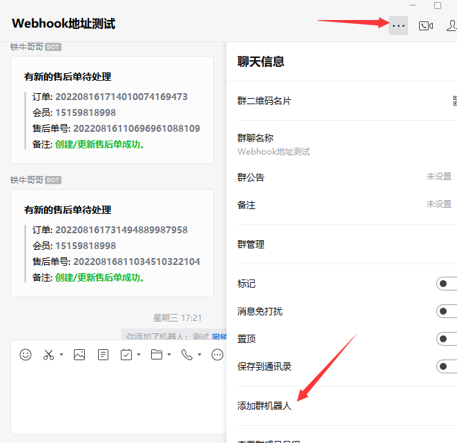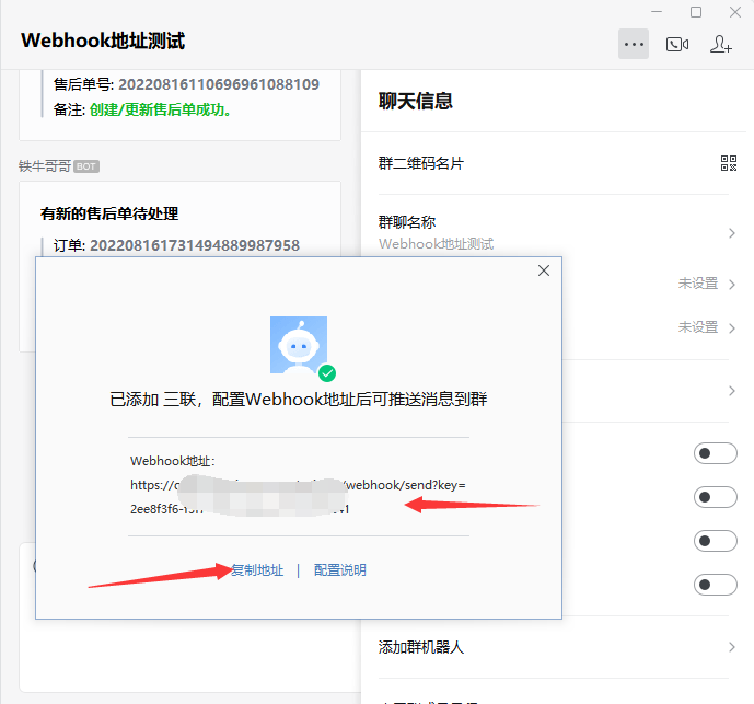 **20,企微群机器人地址**:目前只支持视频号订单,并且需要微信支付才能进行推送,小程序订单或者卡余额支付的订单都不支持