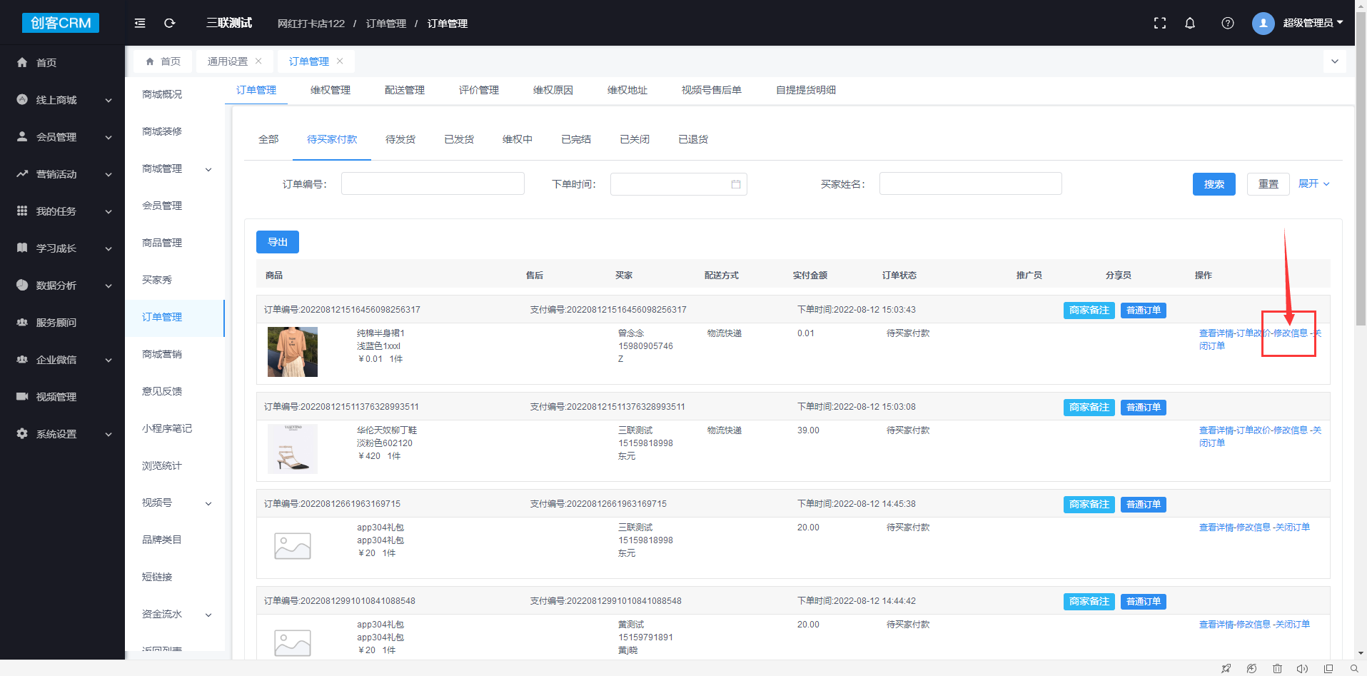a,创客订单管理(已付款和待付款的单子都可以修改)