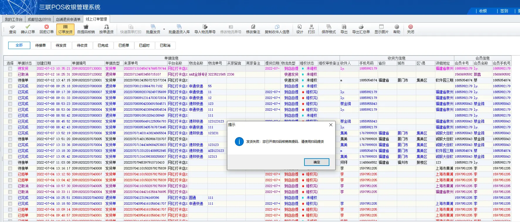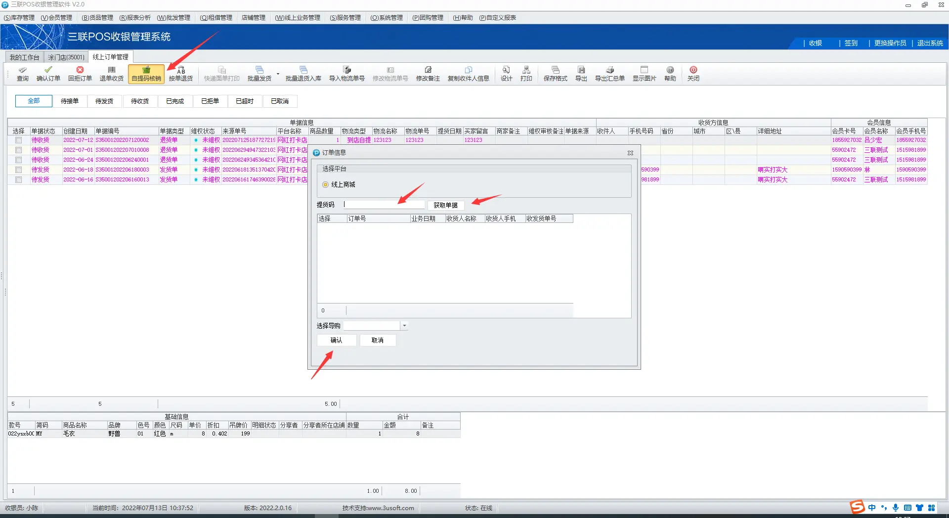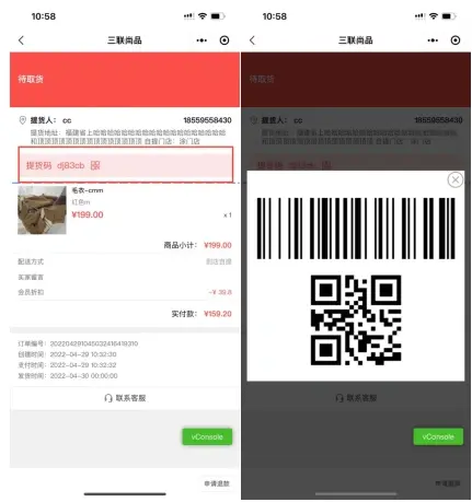 **16,自提订单提货码展示**:开启之后,订单中心会显示自提码,并且分销pos自提订单在提货的时候,必须扫描自提码才能进行提货
