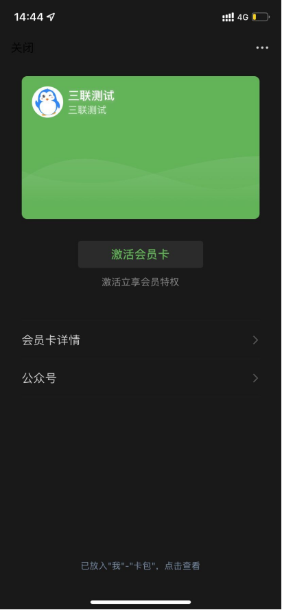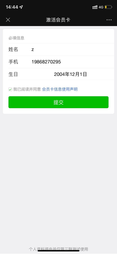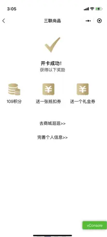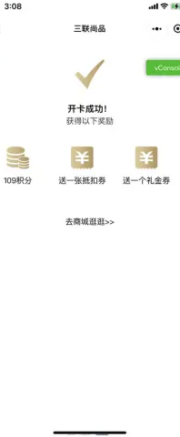 选择类型二,则开卡流程为先绑定手机号,绑定完直接显示开卡成功,最后再去完善信息