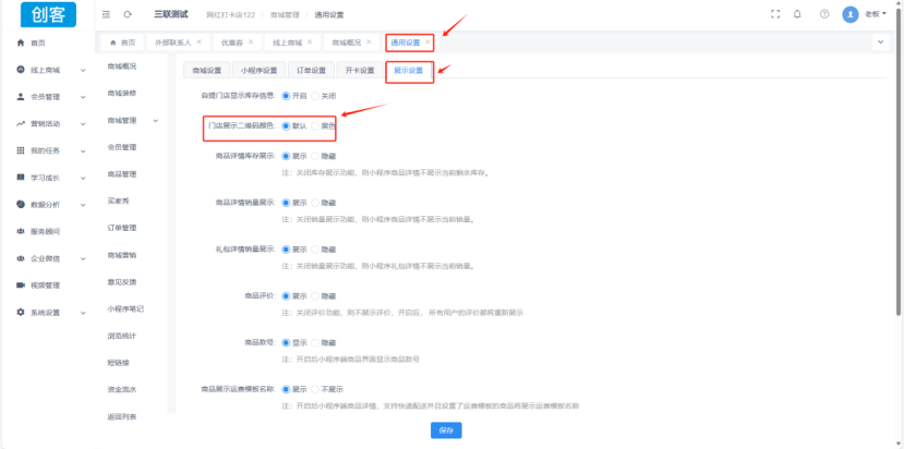 **2,商品详情库存展示**:开启显示商品库存信息,关闭则不显示